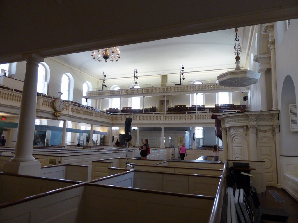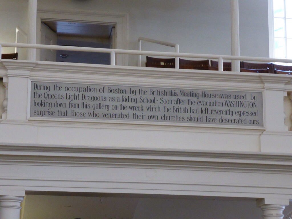 Having had our fill of facial scrubs and daytime TV, we then set off to walk to the North End of Boston where some of the significant events of the Revolution took place and we visited various places of interest such as the Old South Meeting House, the site of the Boston Massacre, the Old North Church and a couple of burial grounds. The Old South Meeting House, we learned, had all its pews chopped up for firewood and was used as a riding school by the British in the Revolutionary War – much, it would seem, to the annoyance of George Washington.