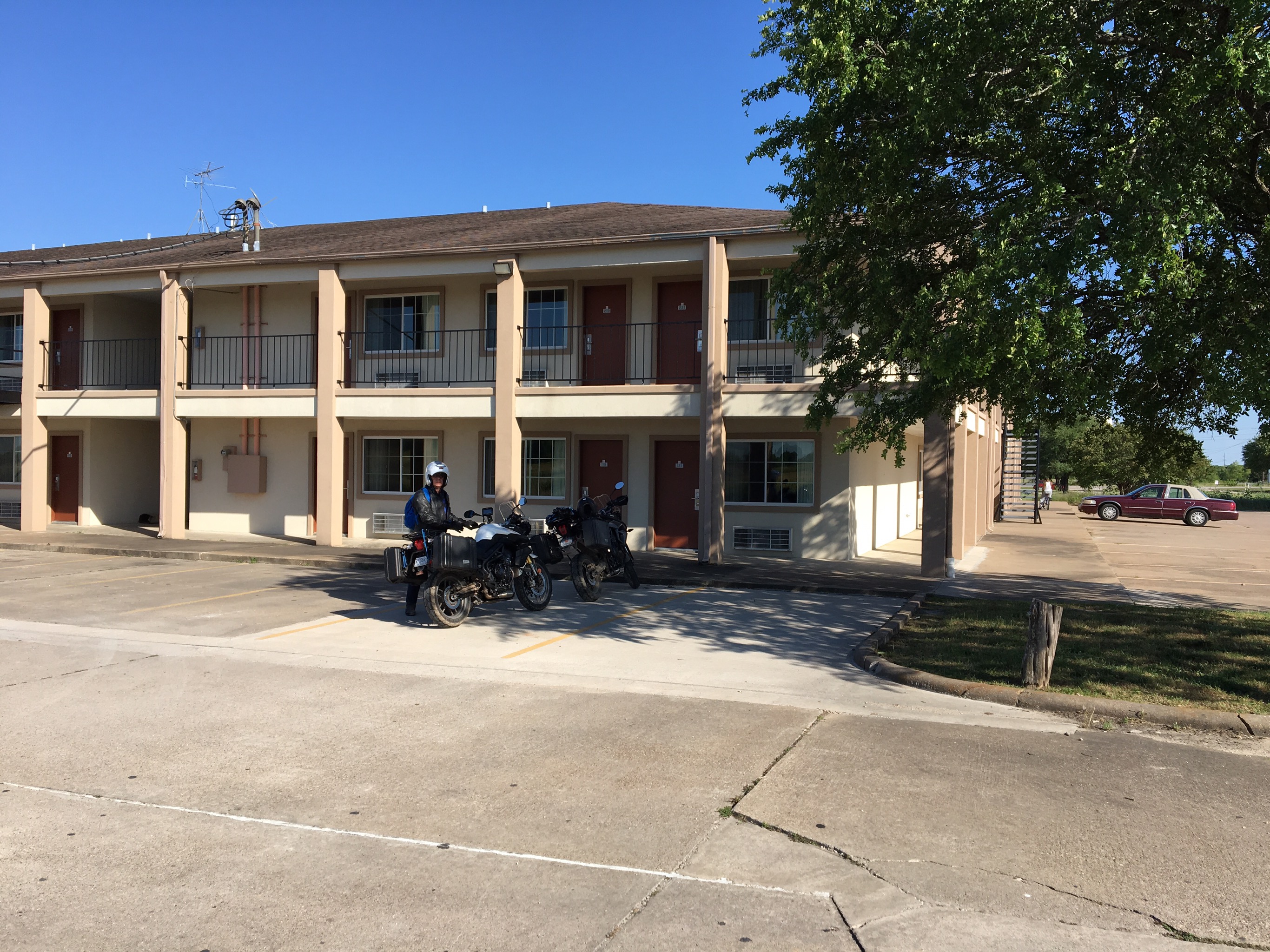 When we set out we had estimated that the journey would be a relatively relaxed 225 miles but somehow that had changed to 280 by the time we arrived in Shreveport. We hadn’t got lost or taken any major detours so can only assume the 225 estimate must have been based on going direct by the Interstates rather than taking the back roads. It was a nice ride but, had we known how far it was, I’m not sure we’d have undertaken it today after the 300 miles the day before.